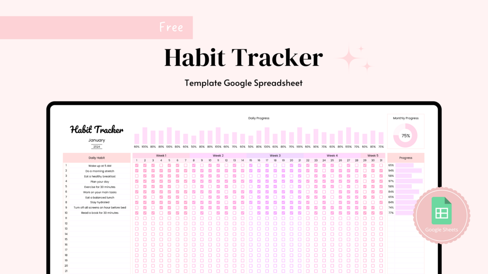 Want to build positive habits in an easy and practical way? This free Google Sheets Habit Tracker template will help you get started!